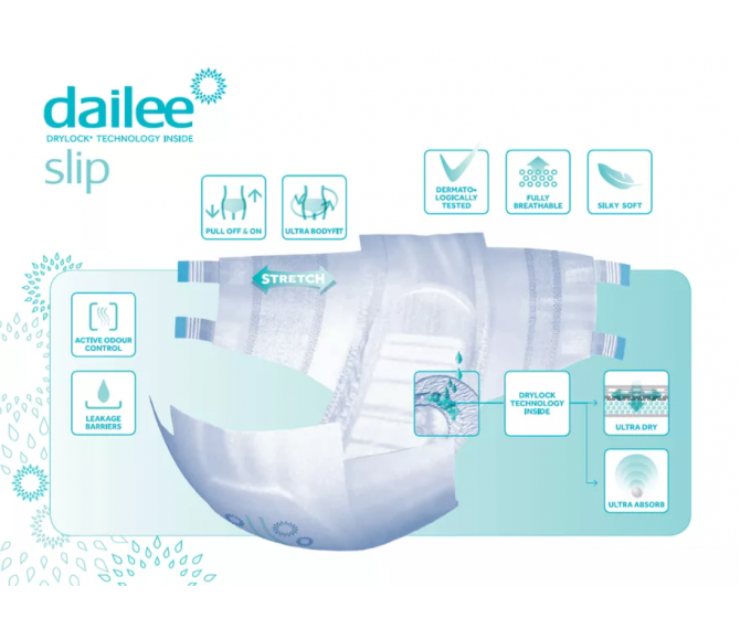 A fralda Dailee Slip Premium Super é a escolha ideal para