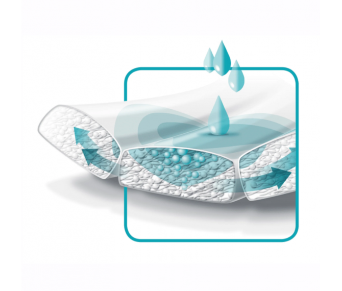 - Drylock: Tecnologia que permite uma ultra absorção de
