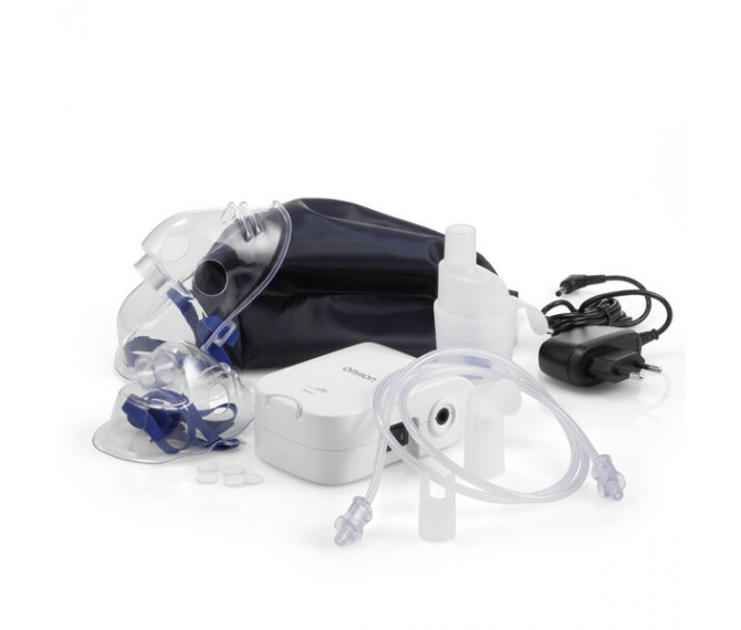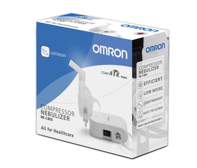 O OMRON CompAIR Basic C803 é o nebulizador de compressor mais leve e silencioso da OMRON que se destina ao tratamento de doenças das vias respiratórias inferiores, como asma ligeira.