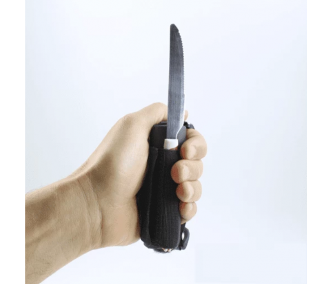 Equipado com um anel em D e uma cinta elástica, é indicado para todos os tamanhos de mãos, tornando a colocação e retirada dos objetos uma tarefa simples, além de poder ser utilizado por pessoas tanto destras quanto canhotas.