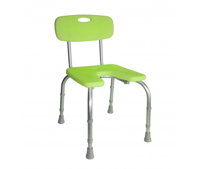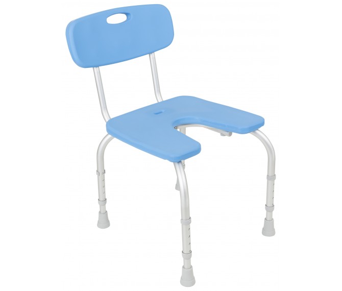 Cadeira anatómica para banho, regulável em altura com abertura frontal para facilitar a higiene íntima.