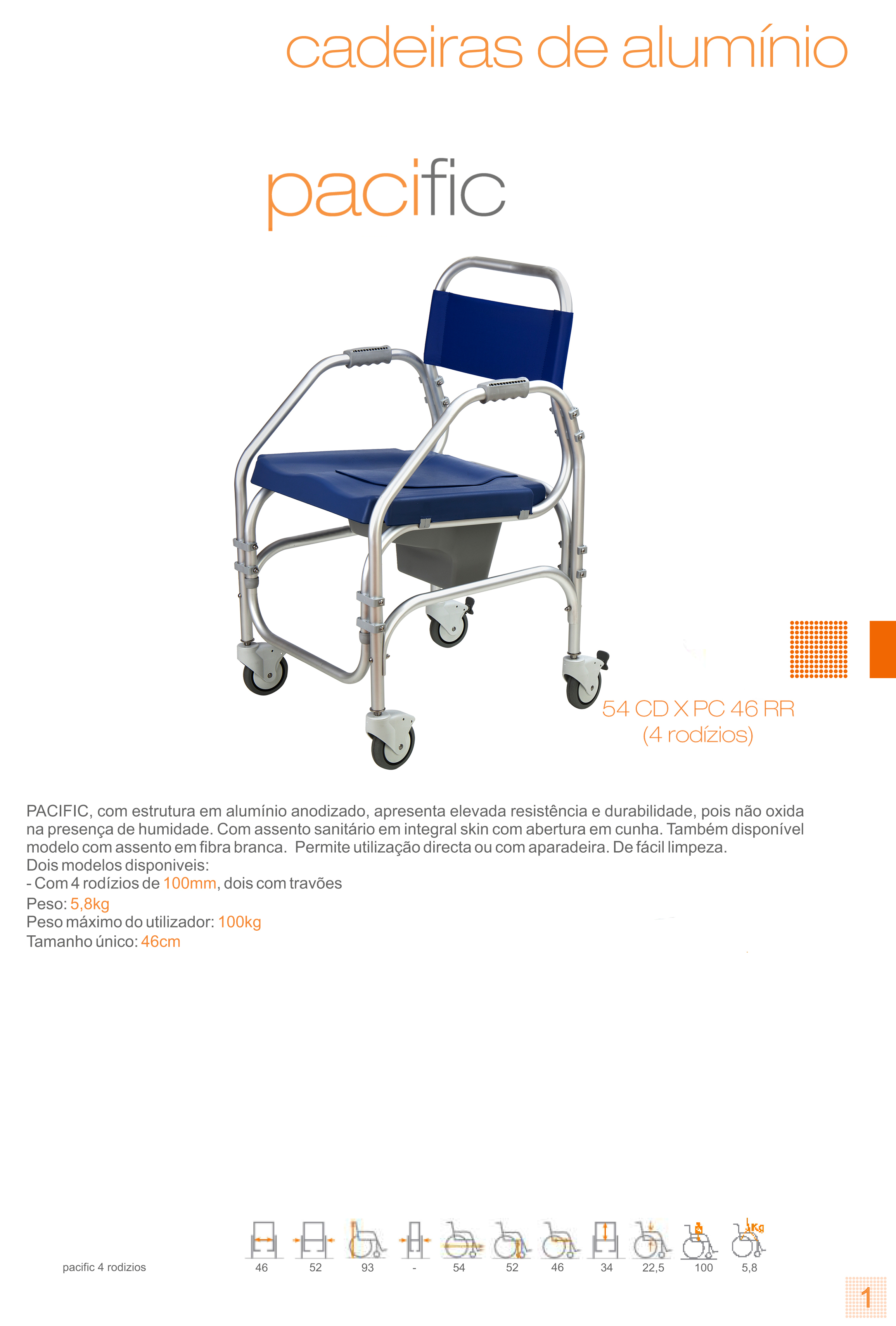 Cadeira Sanitária E De Banho Pacific Com Rodas