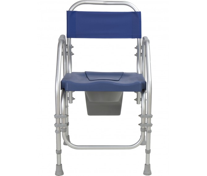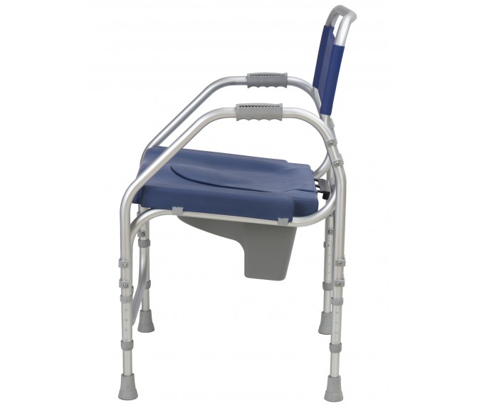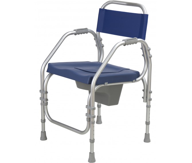 Funciona como cadeira sanitária e de banho, com um assento de conforto, com buraco e recetáculo para fins sanitários. Pode utilizar a cadeira sobre a sanita, regulando a sua altura de forma a que facilite ao utilizador sentar, sem se baixar demasiado, para isso, basta retirar o recetáculo (aparadeira) e encaixar a cadeira na sanita de forma a fazer as necessidades diretamente na sanita. Serve também como cadeira de banho, sendo fabricada em alumínio.