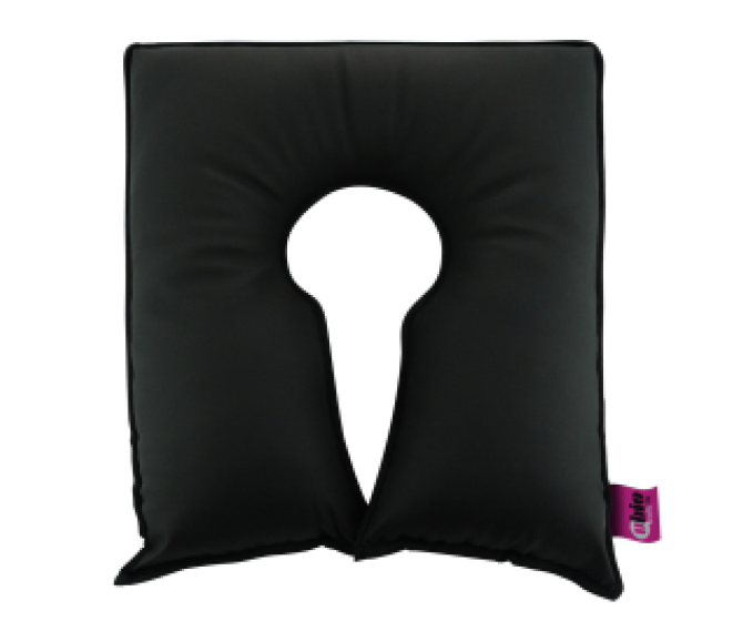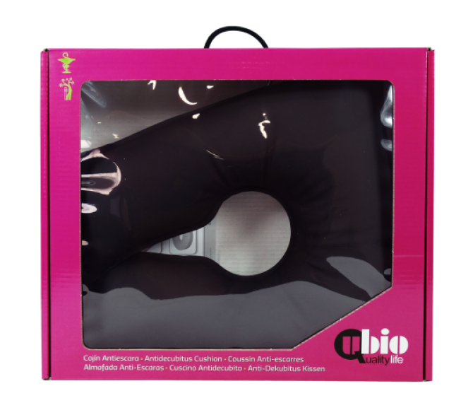 Almofada ferradura com enchimento em fibra oca siliconada e tela exterior impermeável, anti odor, anti bactérias, anti fungos, anti ácaros, anti manchas, transpirável e ignífugo. Com atilhos para fixar em cadeiras normais ou cadeiras de rodas. Bastante confortável e alta. Pode ser utilizada com abertura para a parte frontal ou traseira da cadeira, para um completo alívio da pressão na zona que o utilizador necessite. Peso do utilizador até 90Kg e risco moderado de escaras.