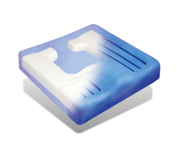 Almofada ergonómica em espuma viscoelástica com efeito de memória e inserção ergonómica. Reduz a pressão nas zonas de maior risco: sacro e ísquio. A inserção é dimensionada em relação ao ísquio. Até mesmo a adoção frequente de uma postura incorreta foi tida em conta, o que esta almofada tenta de facto evitar, bloqueando o ísquio quando este se desloca para a frente.