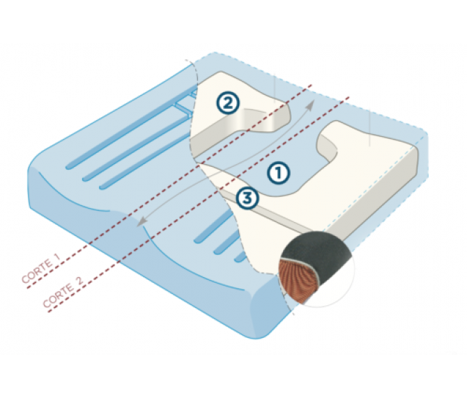- Moldagem precisa do corpo e aumento da superfície do corpo em contacto com a almofada; Melhor distribuição das pressões: redução das pressões transcutâneas nas zonas de risco e facilitação da circulação sanguínea;