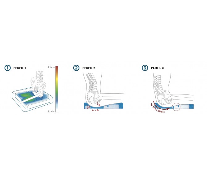 - Distribui a pressão na zona periférica das nádegas, estabilizando a imersão da bacia e evitando que esta atinja a zona inferior.