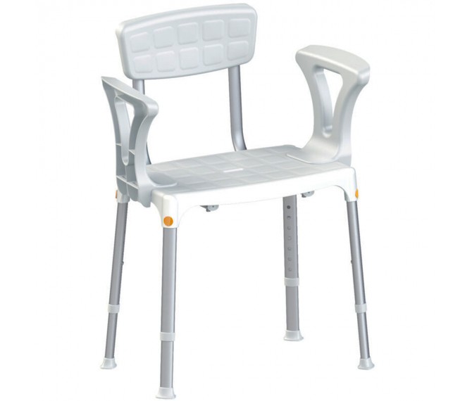 A cadeira de banho oferece maior apoio ao sentar e sentar, e proporcionam maior conforto ao usuário. Os apoios de braço são fáceis de desmontar sem a necessidade de ferramentas.