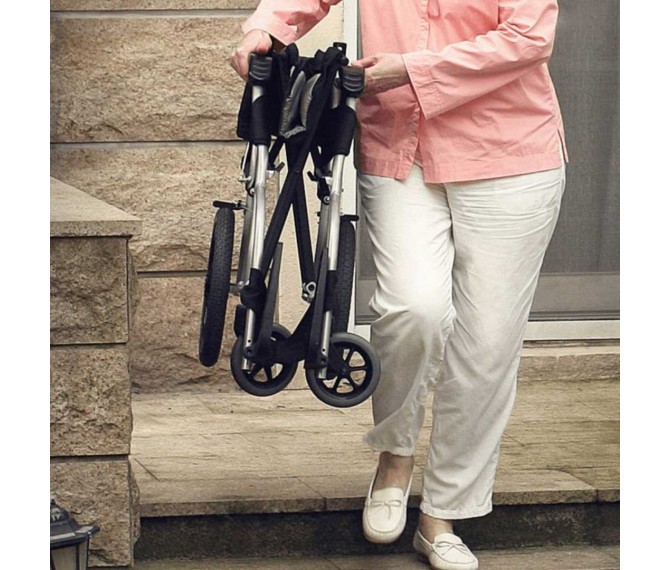 dobragem rápida e compacta do encosto da Ergo Lite 2 facilita o transporte na bagageira do