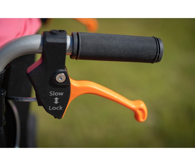 - Travões de acompanhante: De fácil acesso ao cuidador para