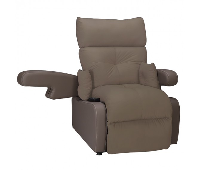 Este cadeirão elevatório elétrico está equipado com braços removíveis e/ou de abrir para facilitar as transferências sentadas ou em pé.