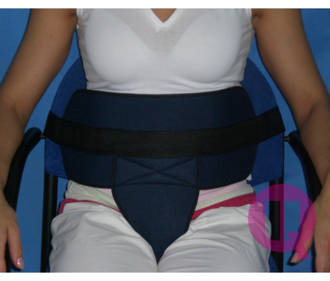 Cinto pélvico Ubio. Oferece a solução contra a instabilidade física, evitando que o utente deslize sobre o assento da cadeira. Fabricado em tecido acolchoado. Fechos de mola muito resistentes. Tamanho 310/290cm (para cadeirão).