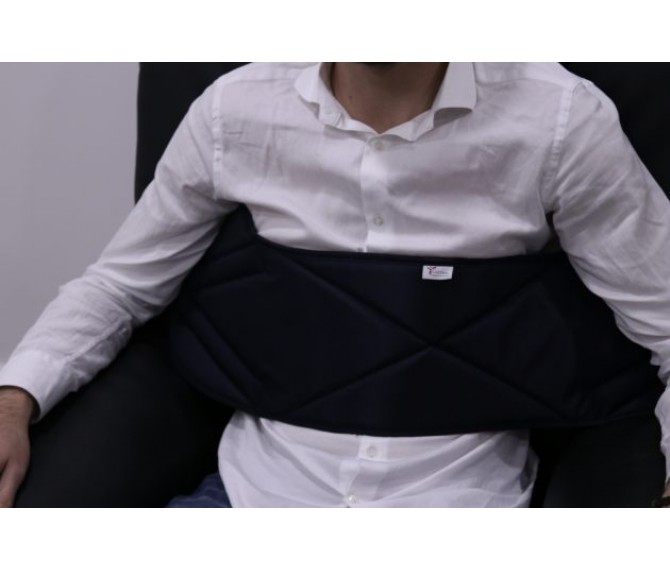 Cinto de segurança com faixa abdominal, indicado para utentes com ausências de postura e/ou equilíbrio aquando sentados em cadeirão.