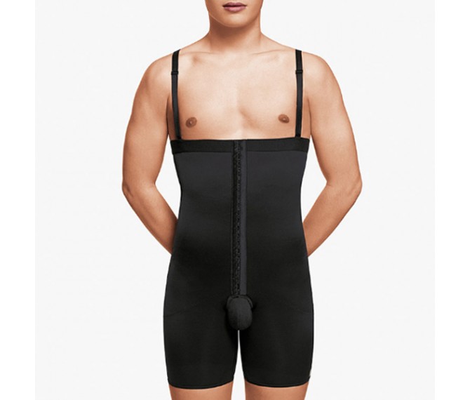 A abertura da cinta, para facilitar ao vestir, no pós-operatório imediato, faz-se através de uma fileira de colchetes na parte anterior. Os colchetes têm 3 posições, permitindo, por isso, reduzir o tamanho da cinta, depois de diminuído o edema e a inflamação da parte intervencionada. Este modelo é aberto na região urogenital. Abrange a partir da área submamária até à zona acima do joelho, com alças.