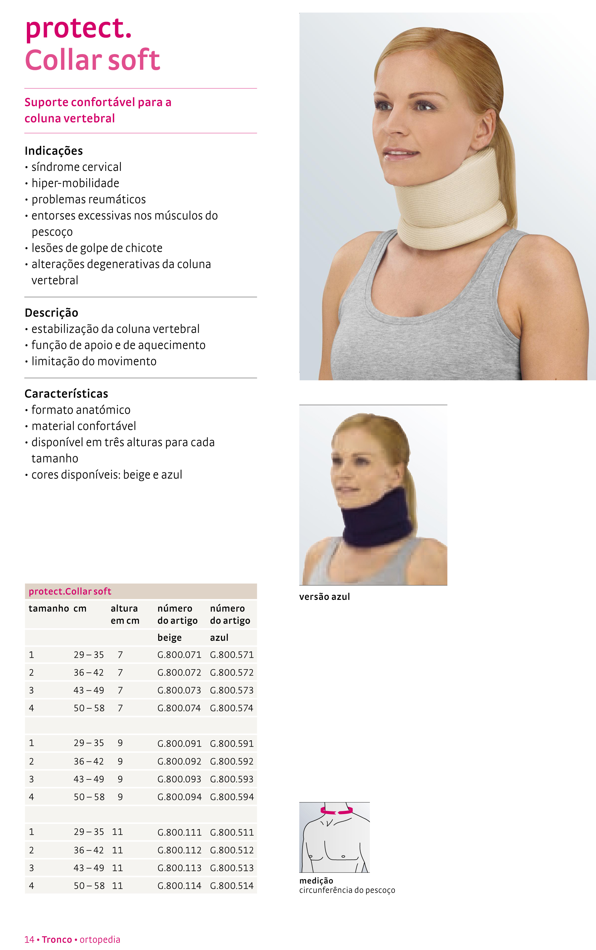 Formato anatómico, material confortável em espuma de média densidade, tecido 100% algodão, disponível em três alturas para cada tamanho.