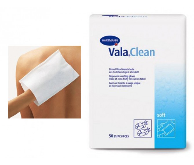 Luvas para banho descartáveis Valaclean® soft em tecido não tecido, extra resistentes e extra suaves. Para a limpeza suave e agradável do corpo.