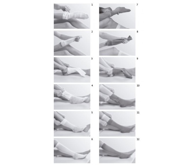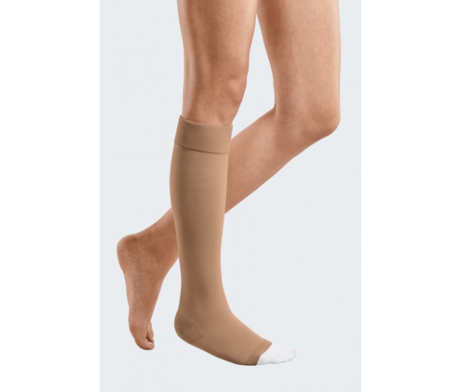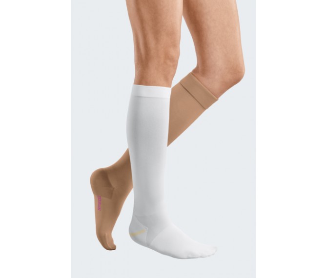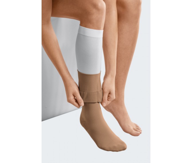 Durante o dia, enquanto está em atividade, deverá usar a meia exterior, mediven ulcer plus (bege), em conjunto com a meia interior (branca) de forma a atingir uma compressão terapêutica de 40 mmHg.