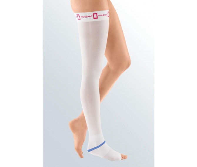 Esta meia anti-embolismo é indicada especialmente para utilização na cirurgia vascular. Outras aplicações são o tratamento de compressão de uma trombose aguda, bem como quadros clínicos linfológicos ligeiros a moderados. (vendida à unidade, apenas para a perna operada, até à coxa)