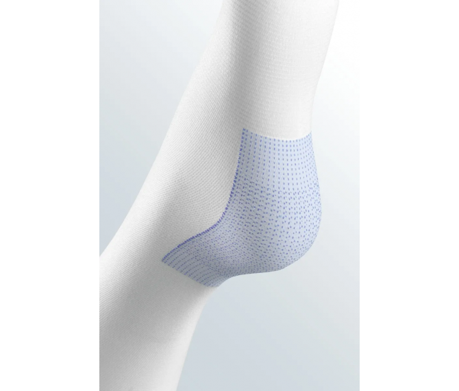 A elevada elasticidade e a malha particularmente suave e respirável, proporcionam uma elevada sensação de conforto. A banda de silicone inteligente permite confirmar a escolha do tamanho adequado e proporciona uma fixação segura. O sistema de código de cores e a banda inteligente são uma ajuda importante na seleção do tamanho correto e facilitam a colocação da meia. A marca no calcanhar assegura o posicionamento correto da mediven® thrombexin® 18. O calcanhar, com uma superfície interior aveludada, reduz o risco de formação de úlceras de pressão. A malha altamente respirável permite um transporte ativo da humidade de dentro para fora, reduzindo o risco de maceração.