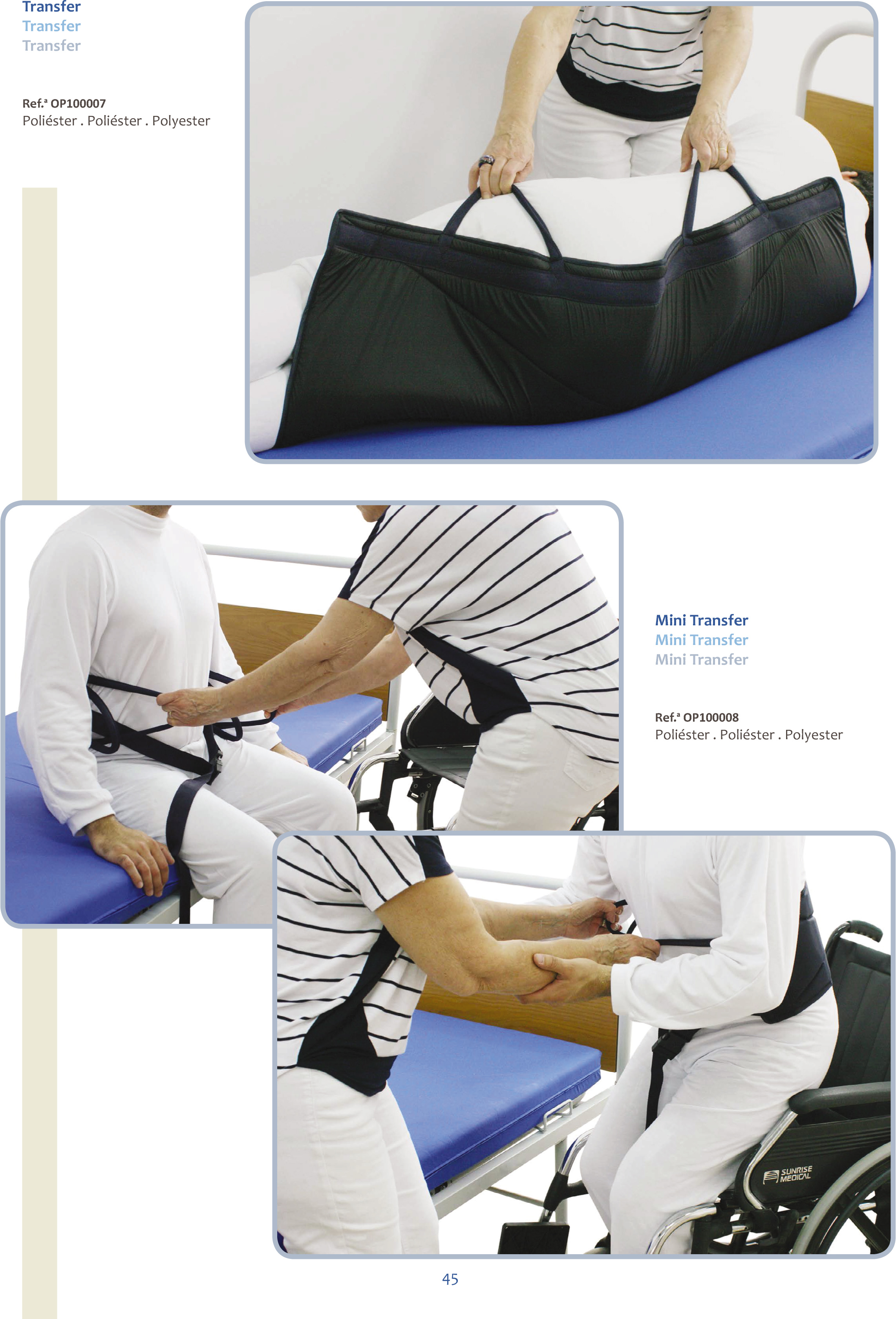 Cinto de transferência que auxilia a transferência do paciente por um auxiliar, evitando quedas. Indicado para utentes com fraca mobilidade e também em transferências de utentes entre pontos de descanso (camas, cadeirões, cadeiras de rodas, etc.).
