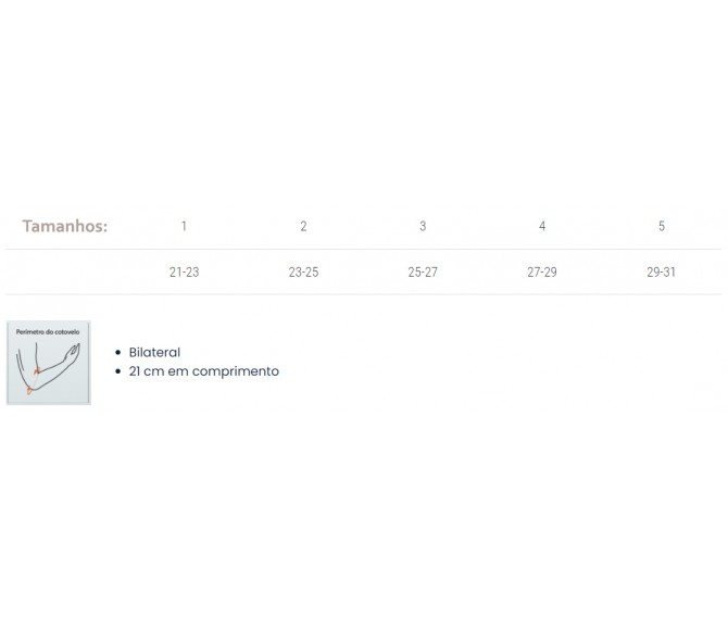 - Incorpora 2 almofadas viscoelásticas para pressão seletiva nos tendões do epicôndilo e da epitrocleia