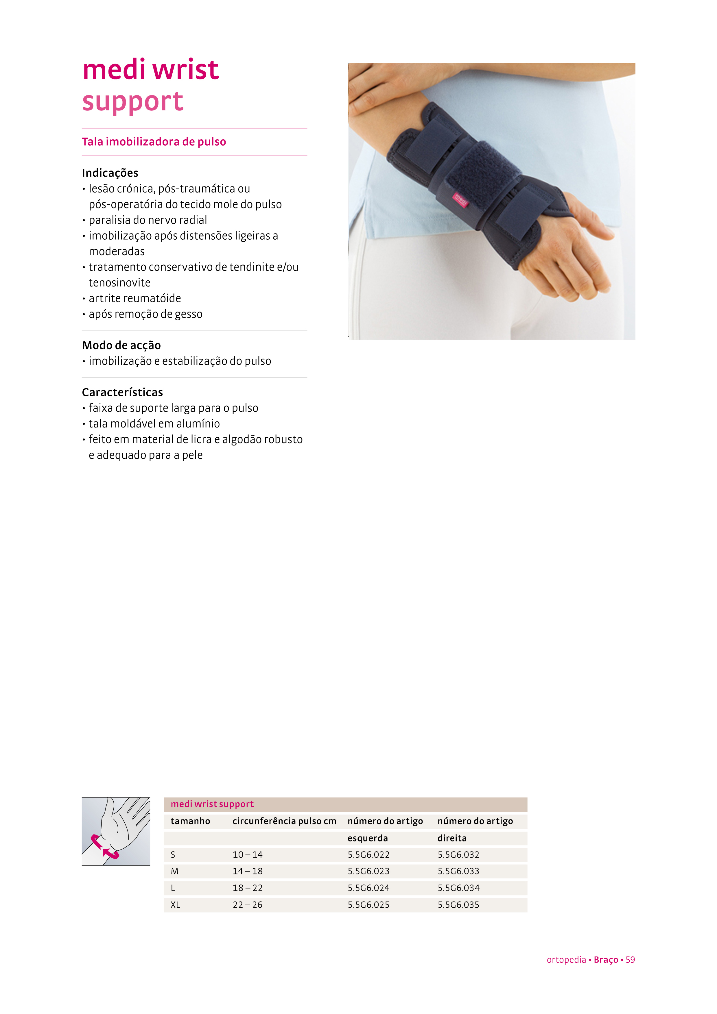 Faixa de suporte larga para o pulso, tala amovível em alumínio, fabricado em material de licra e algodão robusto.