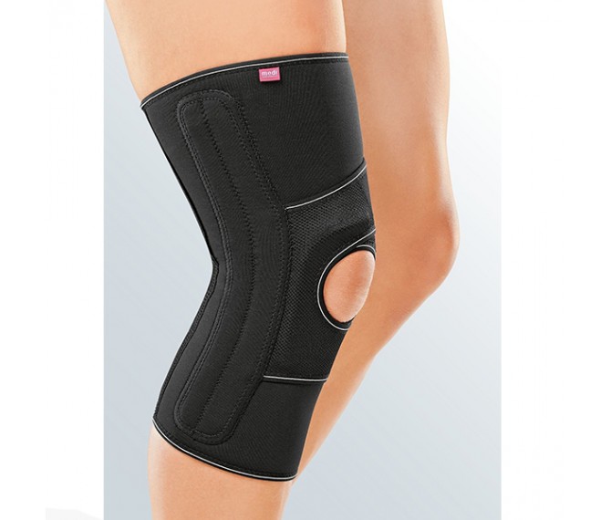 Correção da localização lateral errada da rótula graças a almofada viscoelástica de estabilização, joelheira macia com efeito propriocetivo e de compressão.