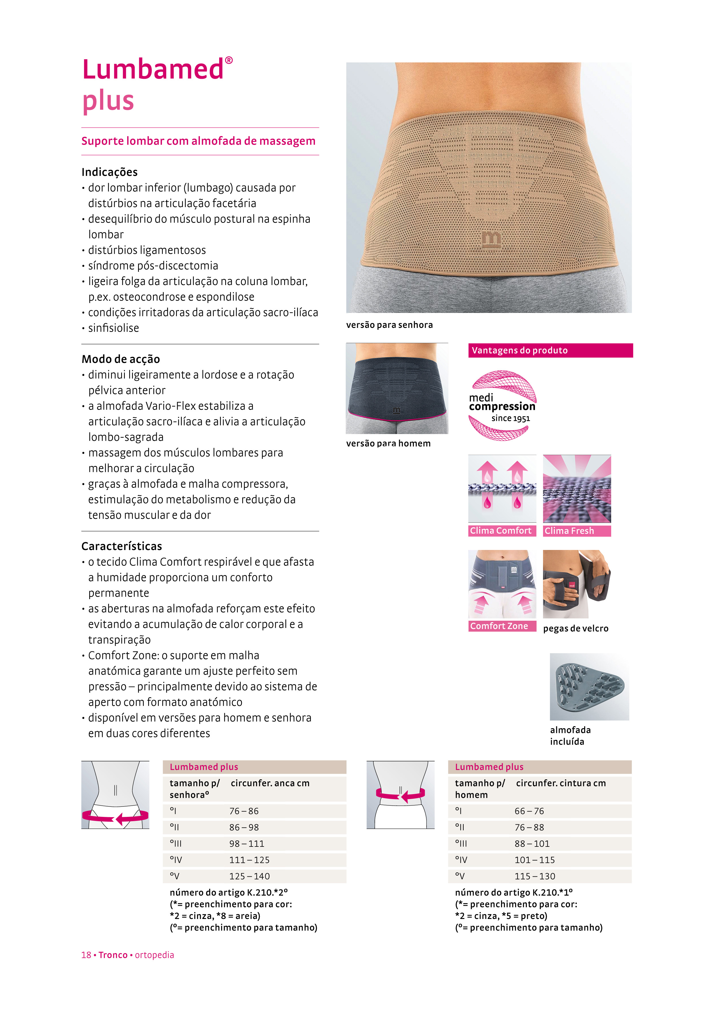 Com 4 barras dorsais moldáveis, forrada a tecido clima comfort respirável, com almofada vario-flex que estabiliza a articulação sacroilíaca e promove a massagem dos músculos lombares para melhor circulação e alívio da dor.