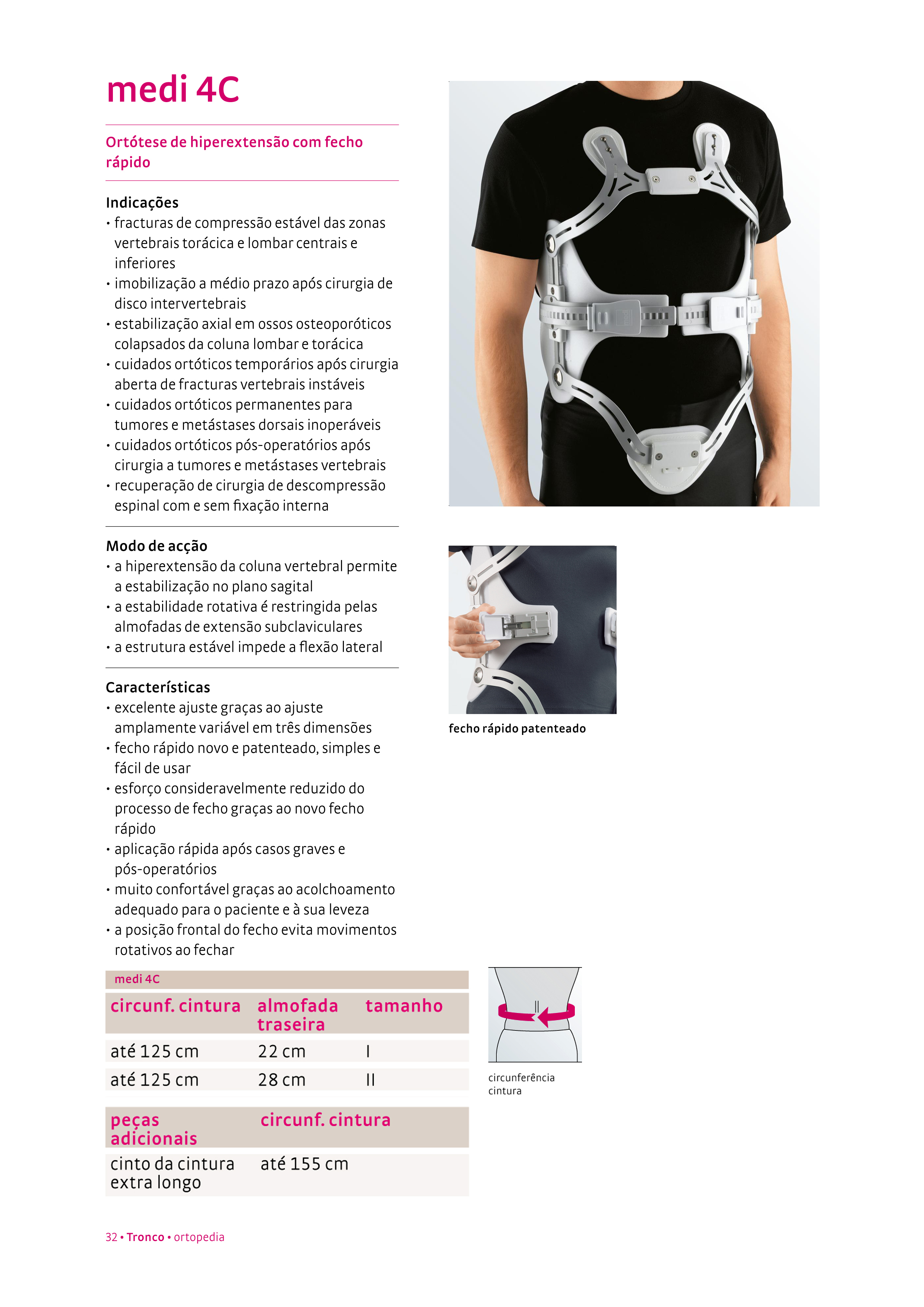 Fraturas de compressão estável das zonas vertebrais torácica e lombar centrais e inferiores, imobilização após cirurgia de discos intervertebrais, estabilização axial em ossos osteoporóticos colapsados da coluna lombar e torácica, cuidados ortóticos após cirurgia a tumores e metástases dorsais inoperáveis, recuperação de cirurgia de descompressão espinal com e sem fixação interna.