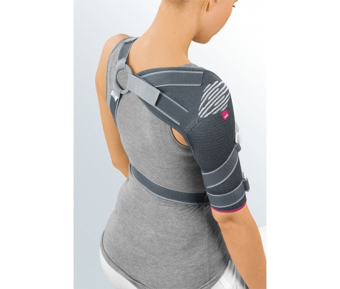 Limitação e prevenção de movimentos prejudiciais graças à limitação marcada e ajustável de rotação externa, abdução e flexão anterior da articulação do ombro. A malha elástica exerce uma compressão local ligeira nos tecidos moles superficiais para limitar e impedir o inchaço e reduzir a tensão muscular. O tónus reduzido dos músculos em volta do ombro corrige os défices posturais no ombro com uma melhor centralização da cabeça do úmero na cavidade glenóide, e também alivia a dor no ombro.