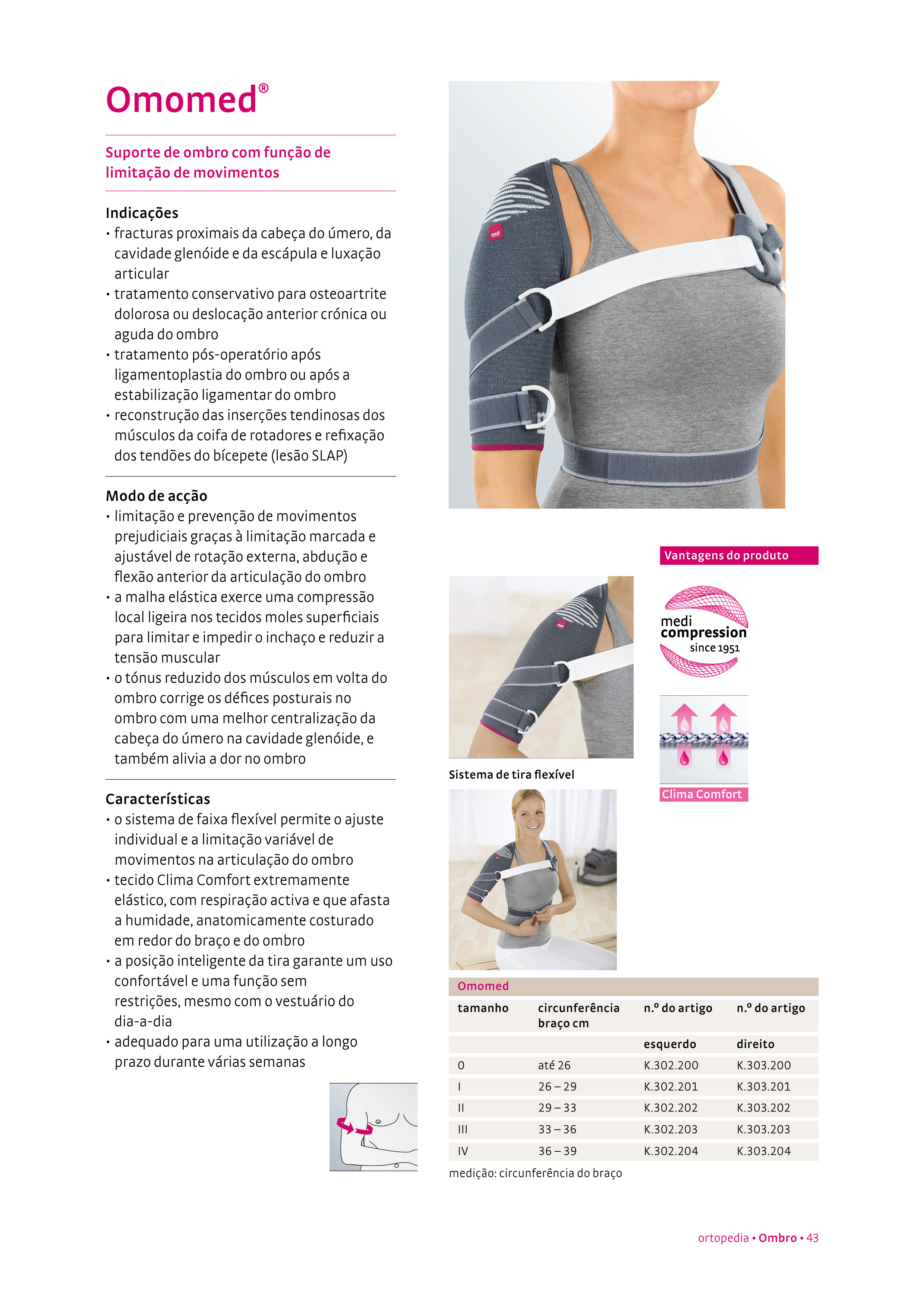 A faixa flexível permite o ajuste e a limitação variável de movimentos da articulação do ombro.