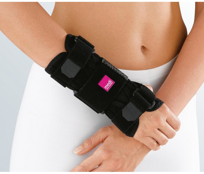Imobilização e estabilização do pulso graças à tala moldável em alumínio.