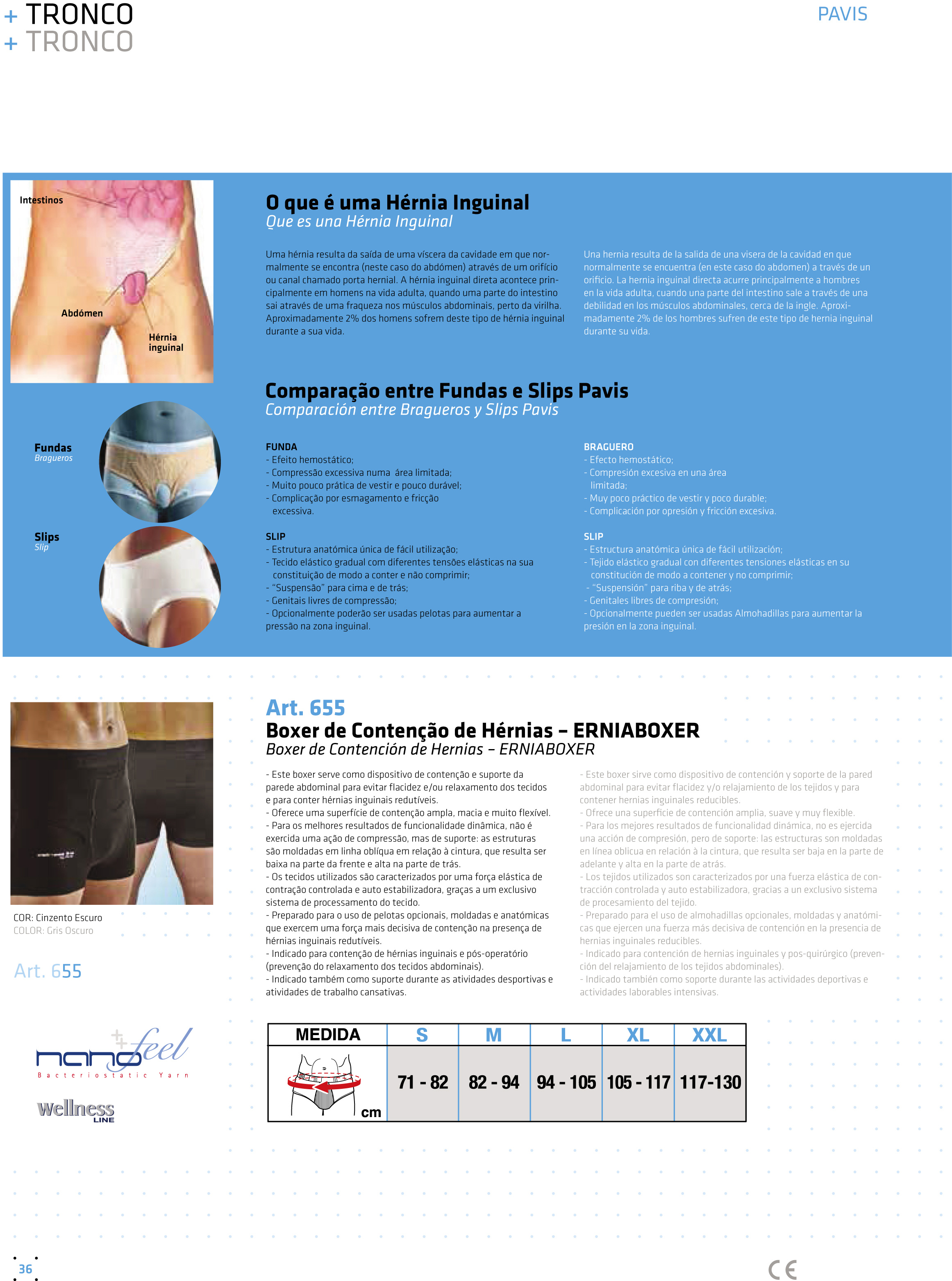 Contenção e suporte da parede abdominal para evitar flacidez e/ou relaxamento dos tecidos e para conter hérnias inguinais redutíveis.