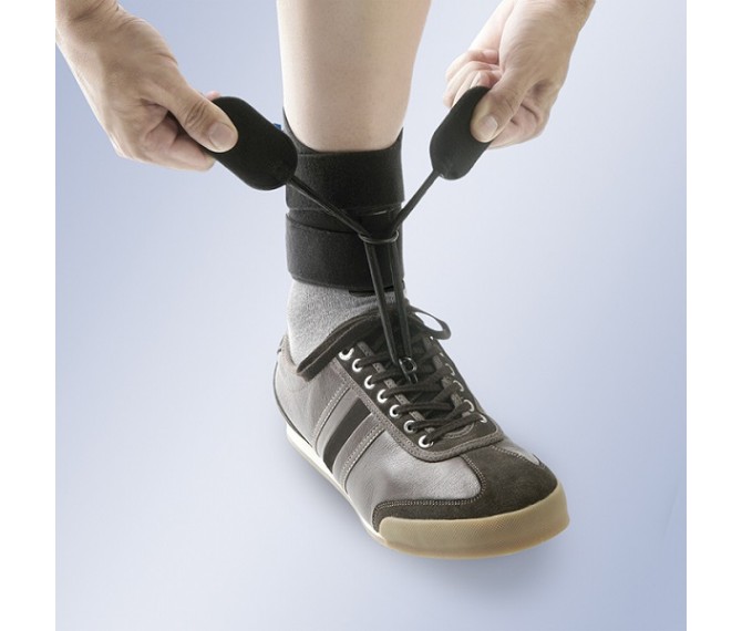Levanta a parte dianteira do ante pé, permitindo uma flexão plantar no apoio do calcanhar quando em posição de marcha. Evita o risco de tropeçar, especialmente em zonas onde haja tapetes ou superfícies irregulares. Este produto é bastante discreto para quem tenha que o usar, ao mesmo tempo que não ocupa qualquer tipo de espaço no calçado, sendo fácil a sua colocação.