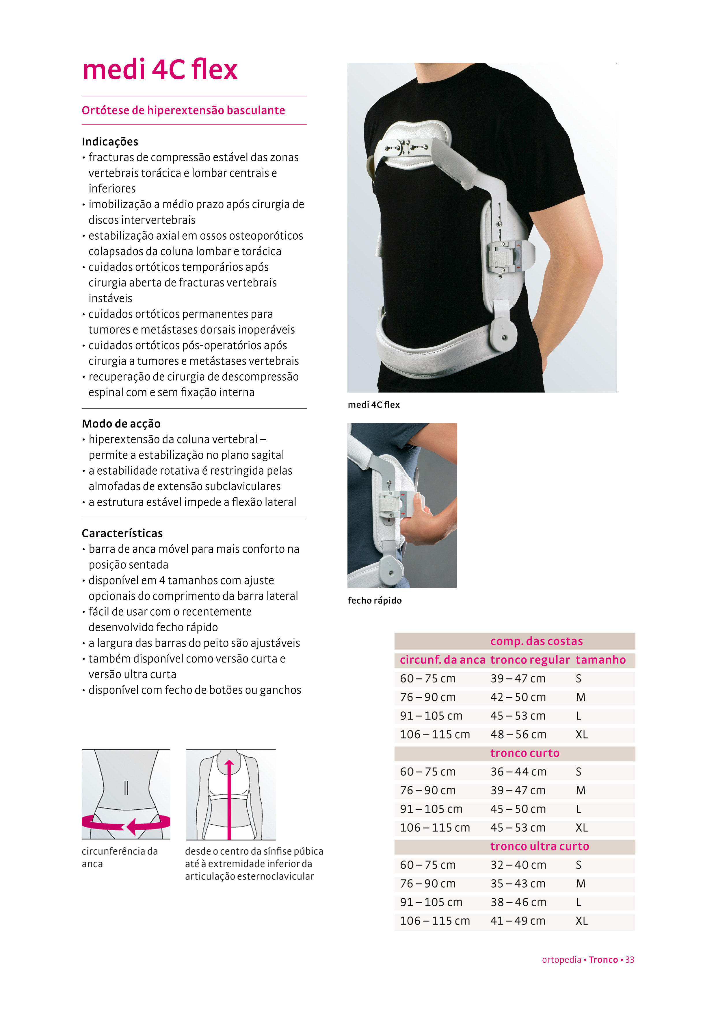 Fraturas de compressão estável das zonas vertebrais torácica e lombar centrais e inferiores, imobilização após cirurgia de discos intervertebrais, estabilização axial em ossos osteoporóticos colapsados da coluna lombar e torácica, cuidados ortóticos após cirurgia a tumores e metástases dorsais inoperáveis, recuperação de cirurgia de descompressão espinal com e sem fixação interna.