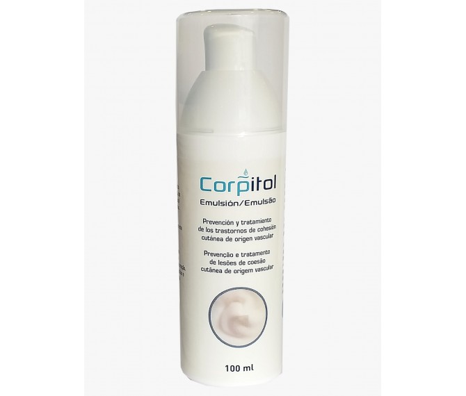 Os estudos realizados com Corpitol permitiram colocar em evidência a manutenção do nível de oxigenação dos tecidos em condições de isquemia. As propriedades hidratantes da emulsão, permitem regenerar a camada hidrolipídica protetora da pele, manter a integridade cutânea e melhorar o estado cutâneo das zonas de risco. A fórmula do Corpitol emulsão facilita a penetração das micro-partículas dos ácidos gordos essenciais hiperoxigenados. A sua textura é não gordurosa e não goteja. De fácil aplicação é absorvido rapidamente.