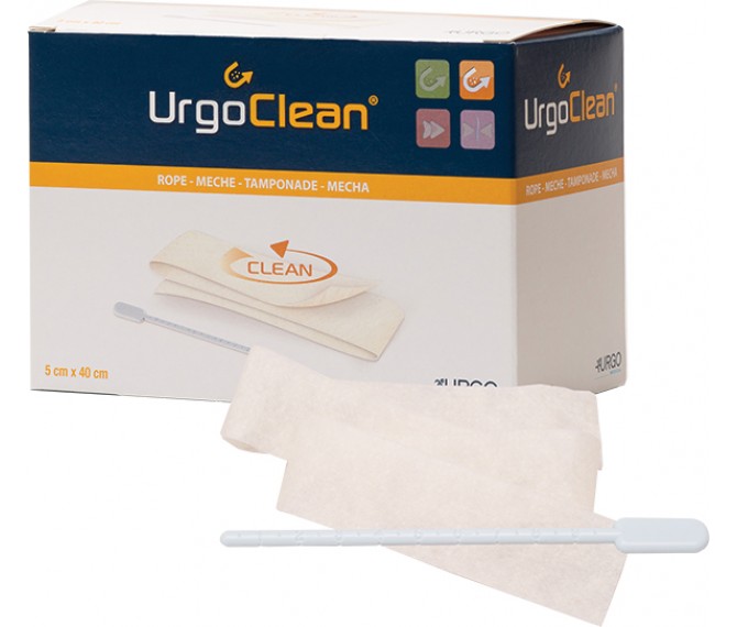 Urgoclean Mecha é um apósito em forma de pavio com sonda estéril, indicado para a fase de desbridamento (limpeza) da ferida. É um penso hidrodetersivo, absorvente e microaderente (não cola à ferida), composto por fibras hidrodetersivas de poliacrilato com núcleo acrílico com uma camada de TLC (Tecnologia Lipídico Coloide) microaderente. Tem propriedades hemostáticas.
