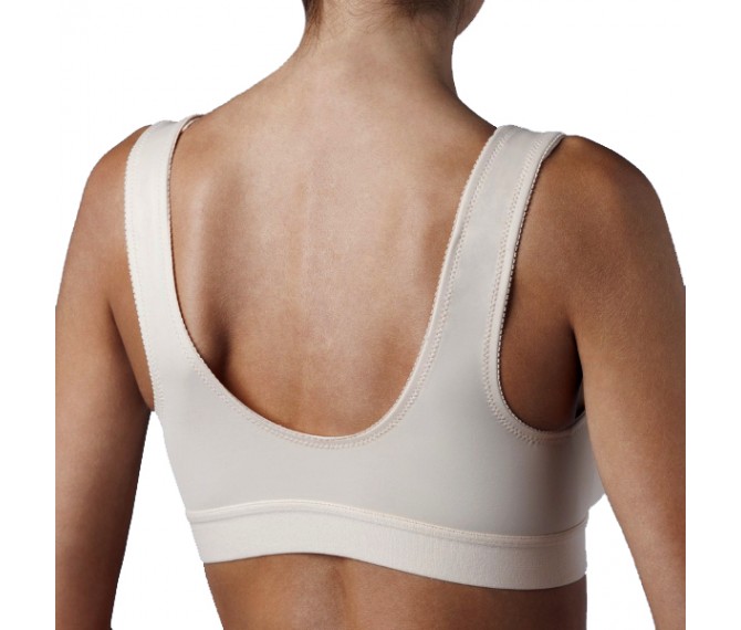 Soutien de sustentação aberto à frente (para primeira fase) da Bliss® permite um bom suporte lateral para uma boa sustentação do peito. Copas com costura plana e interior com forro em algodão, fecho com duas filas de colchetes à frente, permitindo uma colocação muito fácil, assim como facilidade para fazer os curativos. Alça larga, tipo top, com colchetes que permitem regular a altura em 6 posições, adaptando-se a vários formatos de peito, cós largo com elástico em algodão no interior.